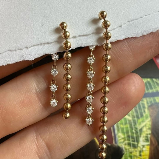 Tia Gold bead and diamond drop earrings