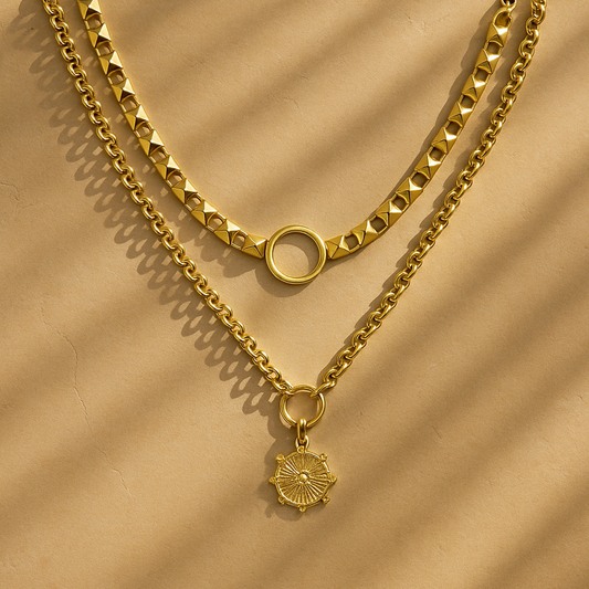 Twin Orbit Gold Necklaces