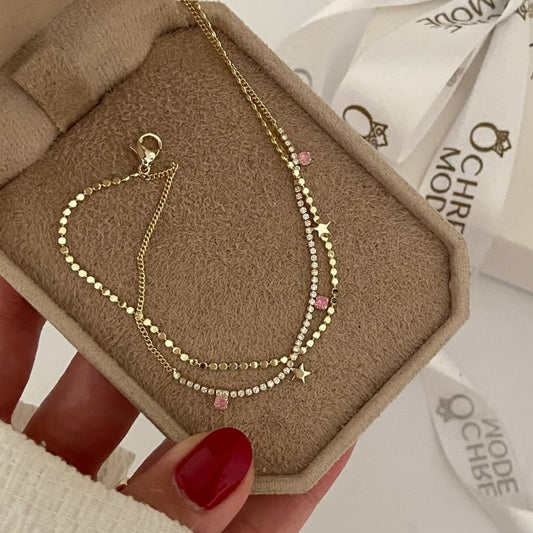 Starry Pink Double-Strand Anklet
