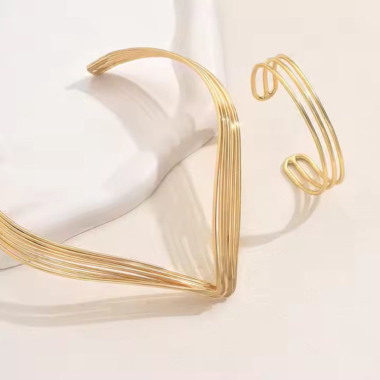 Bold Punk Open-Ended Choker & Bracelet Set for Women
