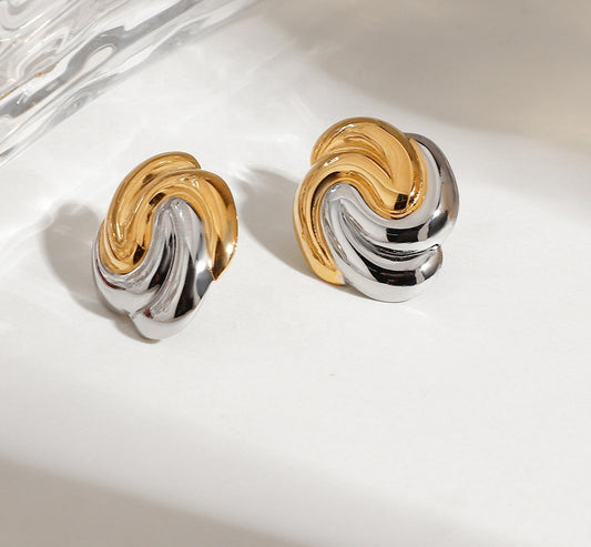 Swirl Knot Dome Studs – Dual Tone Bold Earrings