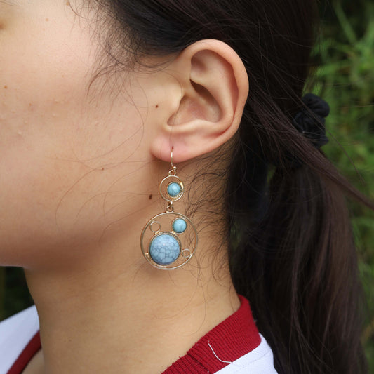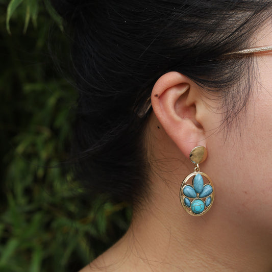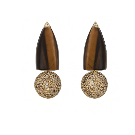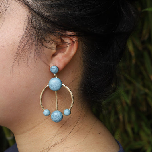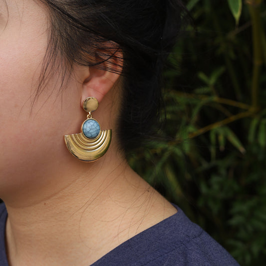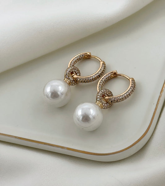 Swirl Drop Stud Earrings with Round-Cut Stones in 18K Gold-Plated