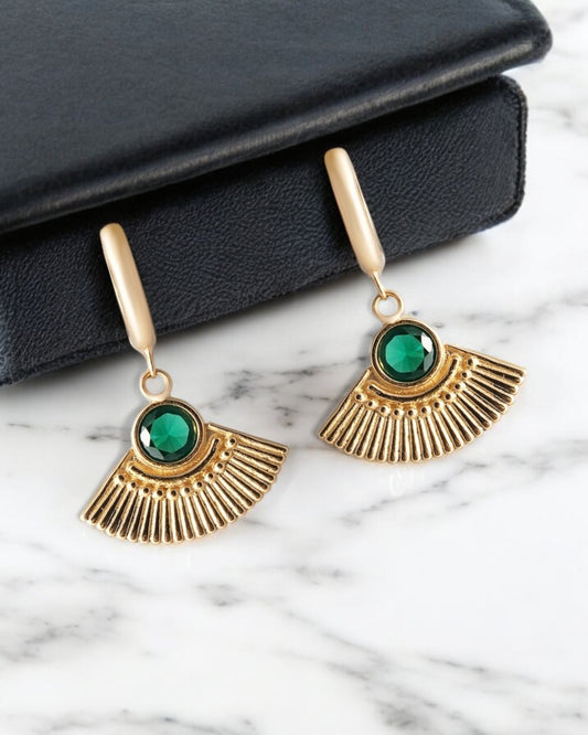 Golden Fan Drop Earrings