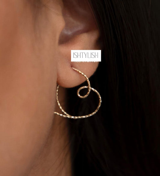 Gold Plated Textured Wire Heart Hoop Earrings for Women