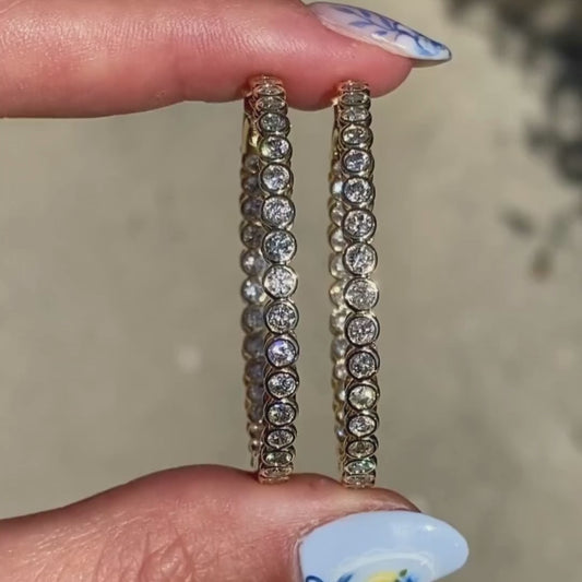 Gold Plated Large Hoop Earrings with Crystal Accents for Women