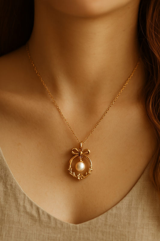Gold-Plated Pearl Bow Necklace