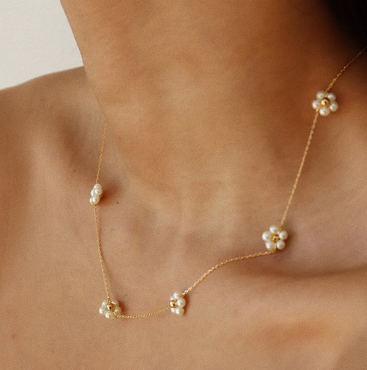 Daisy Pearl Necklace & Bracelet Set – Gold Plated Stainless Steel