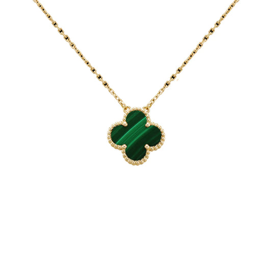 Gold Plated Green Malachite Clover Pendant Necklace for Women