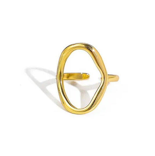 Oval Hollow Gold Ring in 18K Gold-Plated Stainless Steel