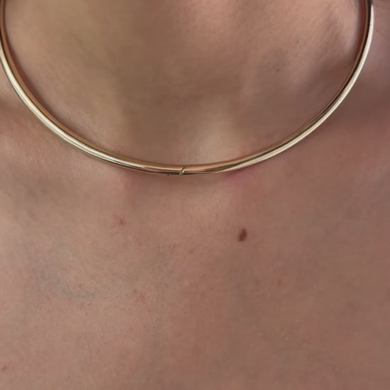 A bold yet refined torque-style necklace in polished gold, featuring a textured coin pendant. It's a timeless centerpiece that speaks to both tradition and trend.