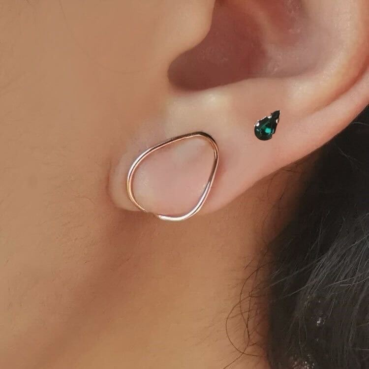 Elegance made versatile. The Emerald Dew Drop Earrings feature a teardrop-shaped rose gold frame and a detachable green crystal that transforms your look in a snap. Go bare and minimal, or add the sparkle—you decide the mood.