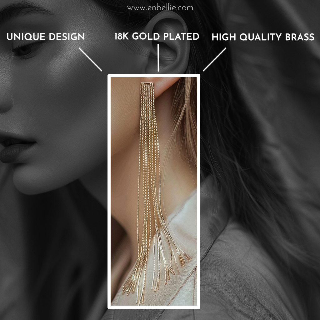Introducing the Golden Stream Earrings, a perfect blend of elegance and modern design. These earrings are crafted from high-quality brass, ensuring they are lightweight and comfortable to wear. The 18k gold plating adds a luxurious finish, making them ideal for any event. Their intricate design effortlessly enhances your look.