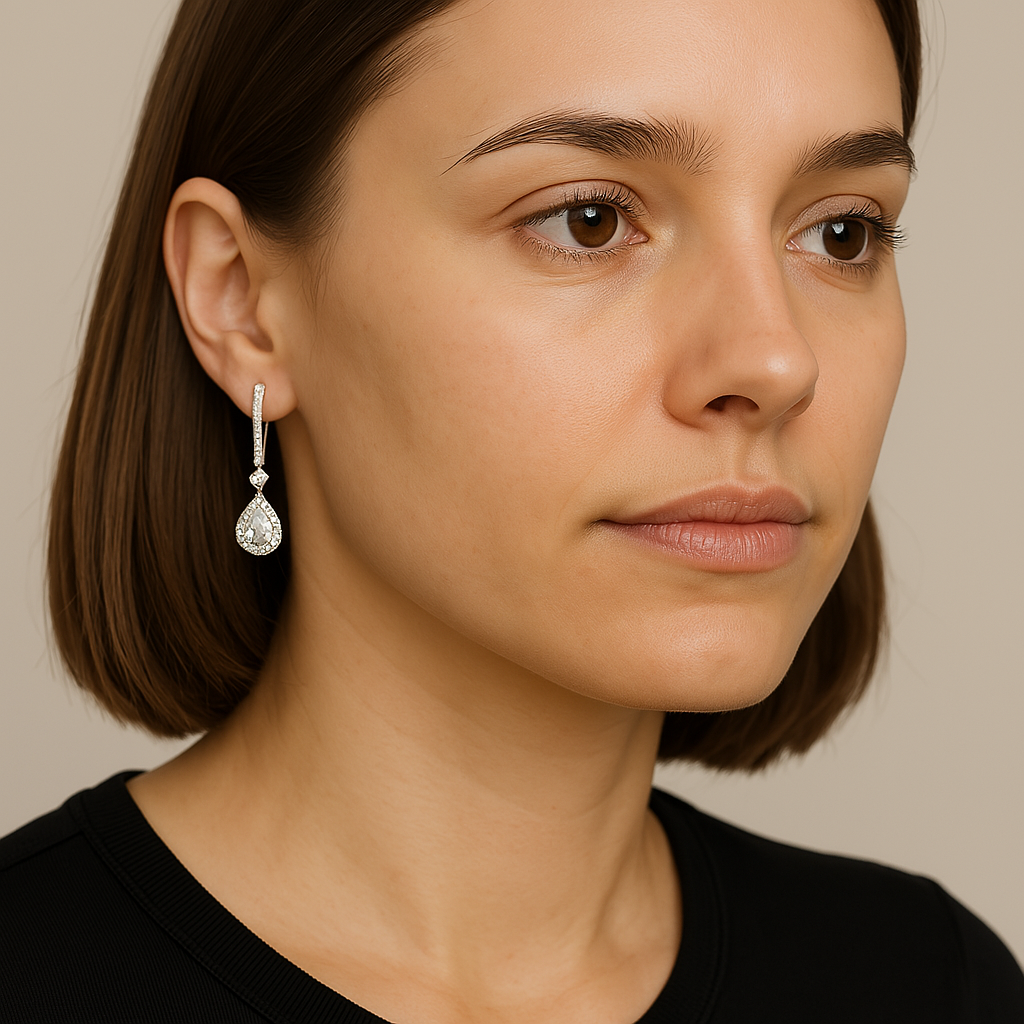 These elegant teardrop earrings are designed with sparkling crystals that catch the light beautifully. Made from durable stainless steel, they offer a timeless and sophisticated look for any occasion.