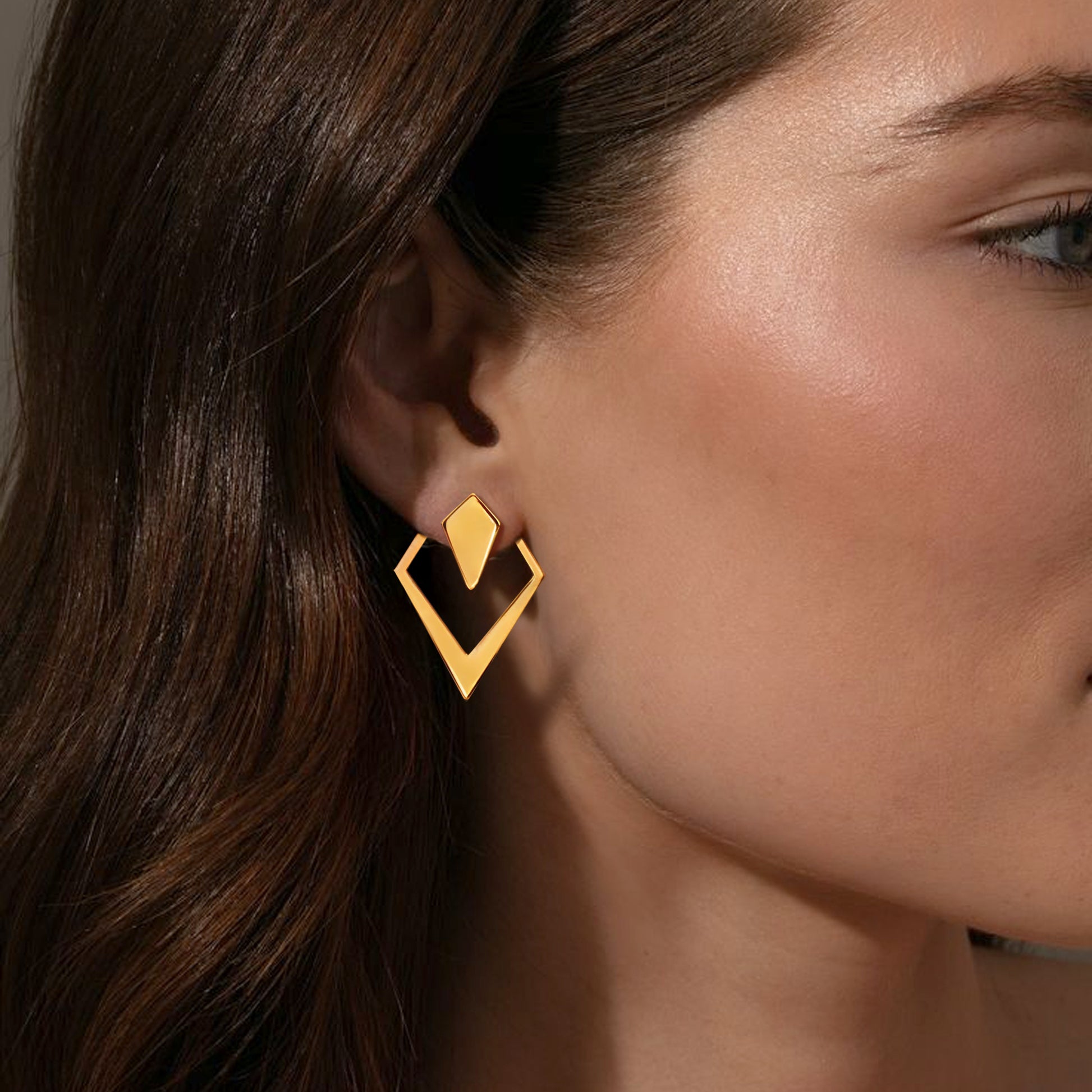 Two looks. One bold statement. The V-Edge Dual Style Earrings let you flip between bold minimal studs and sharp drop silhouettes with ease. Made in gold-plated stainless steel, they’re perfect for office hours and after-hours.